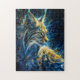 Puzzle lynx bobcat bañado en luz azul amarillenta de neón