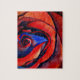 with original art design from watercolour painting by Sacha Grossel of large, close focus, macro style red rose with blue highlights. This traditional English flower with crimson petals has a bright, intense colour design that conveys the abstraction of the botanical form and themes of love and passion.