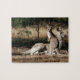 Esta foto australiana muestra a una mamá canguro tirada por la boca en un pedazo de hierba mientras que su joey joven (canguro bebé) sale de su bolsa explorando el arbusto.