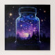 Nuestra serie Magic in a Jar puzzle presenta hermosos paisajes y criaturas en un frasco. Esta muestra estrellas brillantes emergiendo de nubes violetas girando en el cielo sobre pinos oscuros y flores de bonito.