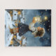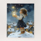 This lush starry night watercolor jigsaw puzzle features a little girl in snow, catching tiny stars in a mason jar. A fun magical theme for kids to enjoy in the cold winter months. Deep indigo blue night sky with glowing stars. A perfect gift for a child for the holidays, or a winter season birthday.
