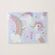 Un lindo rompecabezas morado de unicornio para niños con estrellas y un arco iris. ¡Personaliza con su nombre para hacer un regalo divertido para un chica!