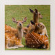 Rompecabezas mullidos para los amantes de la naturaleza y los animales, con un rebaño de ciervos sentados en la hierba.