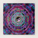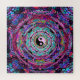 Mandala verde azulada, púrpura y azul con un yin yang en el medio por Amelia Carrie.