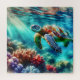 Rompecabezas temática de tortuga. Un ilustracion aéreo de una tortuga marina nadando en el océano.