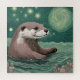 Una nutria en el océano al estilo de Van Gogh con algunas flores polvorientas de rosa en las esquinas