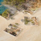 Desafiante rompecabezas con una sorprendente fotografía original del agua azul cristalina del mar esmeralda de Cerdeña en todos los tonos turquesa, rodeado de exfoliación mediterránea verde y bajo el cielo azul de un día soleado de verano.