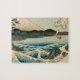 Esta vintage huella japonesa de madera de 1858 se llama El mar en Satta en la provincia de Suruga, por Ando Hiroshige. La hermosa impresión está tomada desde las 36 vistas al Monte Fuji, una famosa huella japonesa de madera en color.