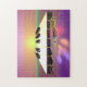 Rompecabezas para los amantes de la música con mi irreal imagen de las teclas del piano flotando en el agua con un sol y tonos rosados y morados.