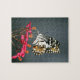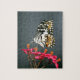 Puzzle Mariposa blanca negra y amarilla en flores rosas