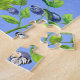 Mariposas y arándanos desafiando el rompecabezas. El fondo es azul y las mariposas son blancas. Gracias a Creative Fabrica por algunos de los elementos del diseño.