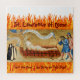 "Devuélveme", dijo a sus verdugos. "¡He terminado de este lado!" Conocido especialmente por su gran sentido del humor, San Lorenzo de Roma (siglo III) es uno de los mártires más celebrados de la Ciudad Eterna. En este espléndido cuadro de c. 1430 del artista veneciano Jacobello del Fiore, San Lorenzo es retratado hasta la muerte. La disparidad en el tamaño de las figuras principales es una característica del arte que no emplea la perspectiva. Cuanto más grande es la figura, más importante es la persona que representa en la composición, Dios el Padre es una excepción aquí. San Lorenzo, tenso en el suelo, domina esta escena. Levantando su torso superior sobre sus codos y con las manos dobladas en la oración, el santo mira al cielo hacia Dios con una expresión serena en su rostro. Al igual que el personalizado en el arte pre-renacentista, Dios el Padre no está representado como una figura humana completa, sino como una cabeza que emerge de las nubes en la esquina superior izquierda de la imagen, donde solamente la Mano de Dios hubiera aparecido simbólicamente en años anteriores. A la derecha del panel, los verdugos de San Lorenzo, al lado en tamaño relativo e importancia para él, atienden el fuego debajo de la mugre con largos rastrillos, el que está delante protegiendo su cara del calor de las llamas. A la izquierda hay dos monjas arrodilladas, monjas que encargaron el panel como objeto de devoción privada o que encargaron el panel en nombre de su convento como parte de una obra de arte más grande como una predecesora. Son las cifras más pequeñas de todas. Los elementos secundarios incluyen dos deslizamientos con inscripciones latinas, uno en el espacio por encima del San Lorenzo y otro alrededor de las monjas. + San Lorenzo es santo patrón de comediantes y cocineros. + Festín: 10 de agosto + Crédito de la imagen (M 022): Martyrdom of Saint Lawrence, with Two Nuns, de Jacobello del Fiore (Venetian Italian; 1370-1439), pintura templada sobre paneles de madera de estilo gótico internacional, 27,7"x14,9" (70,5 cm) x 38 cm), Rijksmuseum, Amsterdam, Países Bajos, Acc. SK-A-4001. Las monjas han sido identificadas como dominicanas o benedicinas. De Wikimedia Commons {{PD-Art|PD-old-100}}. El archivo de imagen ha sido identificado como libre de restricciones conocidas bajo la ley de derechos de autor, incluyendo todos los derechos relacionados y vecinos. + Crédito de la imagen (borde de llama): Extensión/adaptación de imágenes prediseñadas (llamas de fuego digitales) de Diane Hudson, PublicDomainPictures.net, CC0 1.0 Universal (CC0 1.0) Dedicación de dominio público.