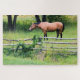 Pon a prueba tu rompecabezas haciendo habilidades con esta toma del caballo, rancho y valla ferroviaria justo abajo y a la vuelta de la esquina. Captura de pantalla en la montaña Signal, Tennessee.. Rompecabezas de 20 x 30 pulgadas con 1.014 piezas.