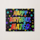 Este vibrante, emocionante y excitante diseño de rompecabezas con temática de cumpleaños tiene el mensaje "FELIZ CUMPLEAÑOS, MATEO" con los personajes con un colorido patrón de gradiente inspirado en el espectro de arcoiris, junto con un animado campo de patrones de fondo de estrellas. Un acertado rompecabezas como este podría ser una manera divertida de enviar saludos de cumpleaños a alguien llamado Mateo. [~Z0000468]