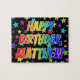 Este animado y vibrante diseño de rompecabezas con temática de cumpleaños muestra el mensaje "FELIZ CUMPLEAÑOS, MATTHEW" con los personajes que tienen un colorido patrón de gradiente inspirado en el espectro de arcoiris, junto con un emocionante campo de patrones de fondo de estrellas. Un rompecabezas vibrante como este podría ser usado para enviar un mensaje de bienvenida de cumpleaños a alguien llamado Matthew. [~Z0000468]