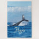 Maui Hawaii Ocean Whale Tail Whale submarinismo con cola saliendo del agua del océano. La hermosa isla de Maui al fondo.