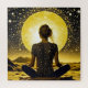 Bonito de arte celeste que representa a una mujer meditando bajo una luna llena rodeada de estrellas.