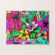 Mezcla colorida de flores tropicales o selváticas con personalizar, personalizable cambiando a tu nombre