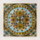 Relajado desconcertante - Miel amarilla de mosaico de Boho - este diseño al estilo dulce amarillo de miel con acentos turquesa muestra un Mandala con un borde de azulejos Este diseño está inspirado en los patrones de azulejos portugueses y hace un buen regalo para los amantes del Mandala.