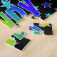 Este emocionante y animado diseño de rompecabezas con temática de cumpleaños presenta el mensaje "FELIZ CUMPLEAÑOS, MINDY" con los personajes que tienen un coloreado patrón de gradiente inspirado en el espectro de arcoiris, además de un divertido patrón de fondo de estrellas. Un rompecabezas vibrante como este podría ser usado para enviar deseos de cumpleaños a alguien llamado Mindy. [~Z0000468]