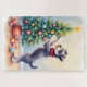 Puzzle Miniature Schnauzer Decorating Christmas Tree Dog