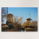 Ouderwetse molens in het Hollandse landschap dat energie uit de wind haalt en een oude cultuur laat zien van Nederland. Aan de waterkant een traditie die Europees nostalgisch gevoel geeft van oude bouwwerken.