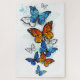 Morfo de mariposa volador, brillante, azul y monarca naranja sobre un fondo blanco. Morfo. Mariposa monarca. Diseño con mariposas.