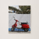 Puzzle Motocicleta roja por pared, isla Stromboli,