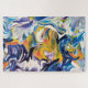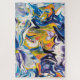 Los colores bajan y fluyen, creando ondas del movimiento en este extracto. Las tonalidades de azules, de amarillos, de naranjas y de púrpuras equilibran la composición de esta pintura. ¿Pues usted junta las piezas de los rompecabezas juntos, cuántas caras usted encontrará ocultadas?