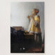 Johannes Vermeer (octubre 1632 - diciembre 1675), en el original holandés Jan Vermeer van Delft, era un pintor neerlandés del periodo barroco que se especializaba en escenas internas de la vida de clase media. Durante su vida, fue un pintor provincial de género moderadamente exitoso, reconocido en Delft y La Haya. Sin embargo, produjo relativamente pocos cuadros y evidentemente no era rico, lo que dejó a su esposa e hijos endeudados a su muerte. Vermeer trabajó lentamente y con gran cuidado, y frecuentemente usó pigmentos muy caros. Es particularmente conocido por su trato magistral y el uso de la luz en su trabajo. "Casi todas sus pinturas", escribió Hans Koningsberger, "aparentemente están ubicadas en dos pequeñas habitaciones en su casa en Delft; muestran el mismo mobiliario y decoración en varios arreglos y a menudo retratan a las mismas personas, en su mayoría mujeres". Su modesta celebridad cedió el paso a la oscuridad después de su muerte. Apenas se le mencionó en el principal libro de fuentes de Arnold Houbraken sobre la pintura holandesa del siglo XVII (Gran Teatro de Pintores Holandeses y Artistas Mujeres) y por lo tanto se le omitió en posteriores encuestas sobre arte holandés durante casi dos siglos. En el siglo XIX, Vermeer fue redescubierto por Gustav Friedrich Waagen y Théophile Thoré-Bürger, que publicaron un ensayo en el que se le atribuían 66 fotografías, aunque hoy en día sólo se le atribuyen 34 pinturas. Desde entonces, la reputación de Vermeer ha crecido, y ahora es reconocido como uno de los mayores pintores de la Edad de Oro holandesa. Cita:Wikipedia
