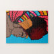 Puzzle Mujer negra, pelo natural envuelto, azul colorido