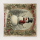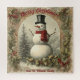 Agrega tu propio saludo y nombre a este diseño de muñeco de nieve vintage del viejo mundo para una divertida alternativa a las tarjetas de Navidad.