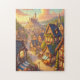 Step into a world of magic and wonder with this beautifully illustrated puzzle, featuring a breathtaking fantasy townscape bathed in golden light. Cobblestone streets, charming half-timbered houses, and a grand castle in the distance create an enchanting atmosphere that transports you to another realm.