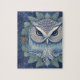 Este búho fantástico de bosque de fantasía es representado como una criatura mágica y mística, con sus ojos penetrantes amarillos y su patrón único de plumas. Está situado sobre un telón de fondo de vegetación de invierno y de estrellas brillantes y encantadoras entre el cielo nocturno.