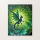 Puzzle Name, Fantasy Dragon Flying in Green Light Rays