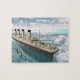 Nave titánica famosa que flota entre los icebergs en el agua por día nublado