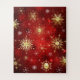 Puzzle Navidades Copos de nieve dorados con fondo rojo