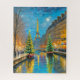 Celebre la temporada de fiestas con este vibrante ilustracion de un bello árbol de Navidad en el corazón de una encantadora plaza del pueblo. El árbol está adornado con adornos brillantes y coronado con una estrella brillante, sobre un impresionante fondo de puesta de sol. Perfecto para difundir alegría por las vacaciones y capturar la magia de los Navidades.