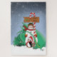 Un pingüino lindo le está dando a un dragón verde un regalo de Navidad en el polo norte. Un muñeco de nieve con un caramelo de caramelo del Polo Norte en el fondo de una señal de caída