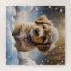 Un lindo cachorro vacacional jugando en la nieve en un rompecabezas de Navidades de invierno.