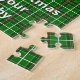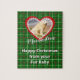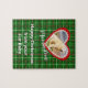 Sube tu foto favorita y agrega un nombre para personalizar este rompecabezas de navidad y celebrar a tu fiel amigo. La decoración es de estilo escocés, con tonos rojos, verdes y blancos. La foto está enmarcada en un corazón rojo con un borde de huellas blancas. El saludo de temporada es editable a la medida - o usted puede usar el "Feliz Navidad de su bebé" por defecto.