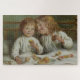 Este diseño presenta un cuadro del pintor inglés de la era victoriana Joseph Clark (1834-1926). Muestra a dos niños pequeños comiendo fruta y galletas en la mañana de los Navidades. El chica le está sonriendo a su hermano, y el niño está mirando al espectador mientras su hermana lo mira con cariño. Los niños pequeños están sentados en la cama juntos mientras disfrutan de las festividades de los Navidades. Hay Navidades haciendo galletas en las sábanas que los niños han tirado. También hay un bol de fruta delante de ellos. Ambos niños tienen el pelo castaño y ambos llevan ropa de noche blanca. Es una hermosa representación de una celebración tradicional de Navidades en la Inglaterra victoriana.