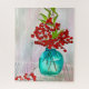 De una pintura acuarela original del artista Sacha Grossel de bayas de Navidades rojos en un jarrón turquesa todavía vida de arte fino. Navidades rojos y verdes pintan esta hermosa y colorida obra de arte hace un hermoso regalo para cualquier época del año.