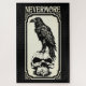 Ilustracion gótico de un cuervo en el cráneo. El texto Nevermore es una referencia a The Raven de Edgar Allan Poe.