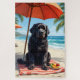 A gentle Newfoundland enjoying a peaceful beach setting with tropical fruits and ocean views. The painterly style creates a calm and strong coastal atmosphere.