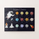 Cuto y atractivo tema del espacio exterior Jigsaw Puzzle para el aspirante a astronauta que puede desarrollar una fascinación por los planetas, cohetes y todo lo que hay en el universo. Personalizar con su propio texto o nombre de su hijo y que aprenda sobre el cosmos mientras disfruta de diversión recreativa.