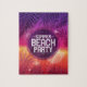 Decorativo diseño nocturno fiesta de playa de verano con palmeras y chispas al fondo.