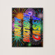 Este vibrante y animado diseño de rompecabezas con temática de cumpleaños presenta el mensaje "FELIZ CUMPLEAÑOS, CASEY" con un colorido patrón de gradiente inspirado en el espectro de arcoiris, y un divertido estallido de fuegos artificiales de celebración inspirado en el patrón de fondo. Un acertado rompecabezas como este podría ser usado para enviar saludos de cumpleaños a alguien llamado Casey. [~Z0000465]