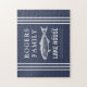 Rompecabezas rústico de la casa del lago con una imagen rústica de trucha y una audaz tipografía serbia. Personalice este diseño con su apellido y año. Personalizar este diseño seleccionando el enlace "personalizar adicional" si lo desea.
