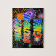 Este animado y vibrante diseño de rompecabezas con temática de cumpleaños presenta el mensaje "FELIZ CUMPLEAÑOS, GINA" con un colorido patrón de gradiente inspirado en el espectro de arcoiris, y un divertido estallido de fuegos artificiales de celebración inspirado en el patrón de fondo. Un colorido rompecabezas como este podría ser usado para enviar saludos de cumpleaños a alguien llamado Gina. [~Z0000465]
